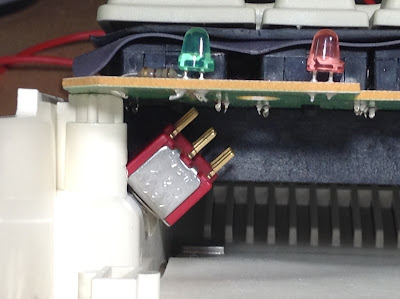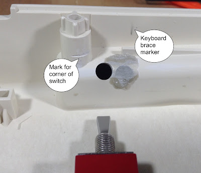 Moving the switch closer to the drive also meant the switch hitting the post for one of the screws holding the top and bottom of the case together.