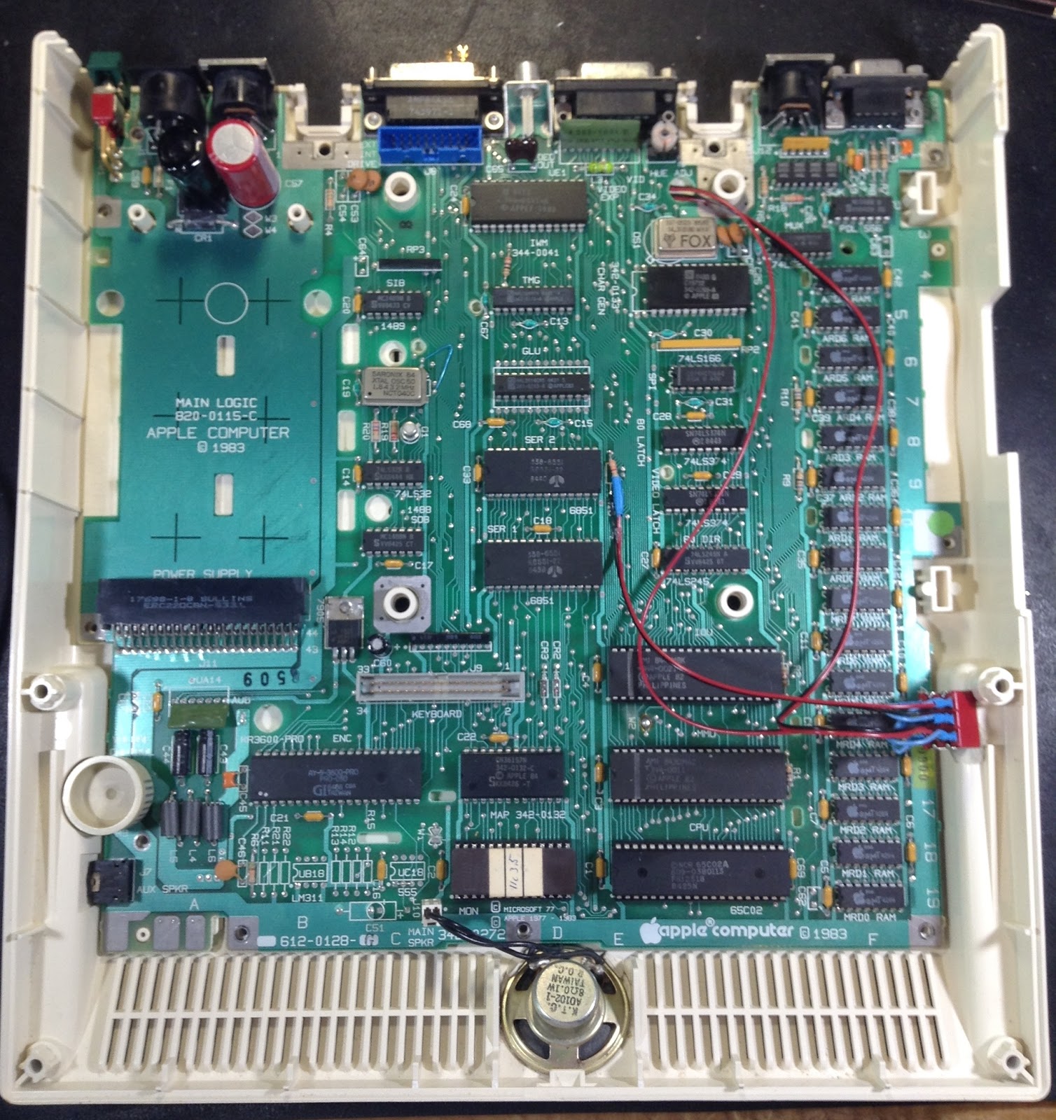 The left side of the //c motherboard has RAM so since I was going to make another hole I raised it up to the corner where the case widens out.
