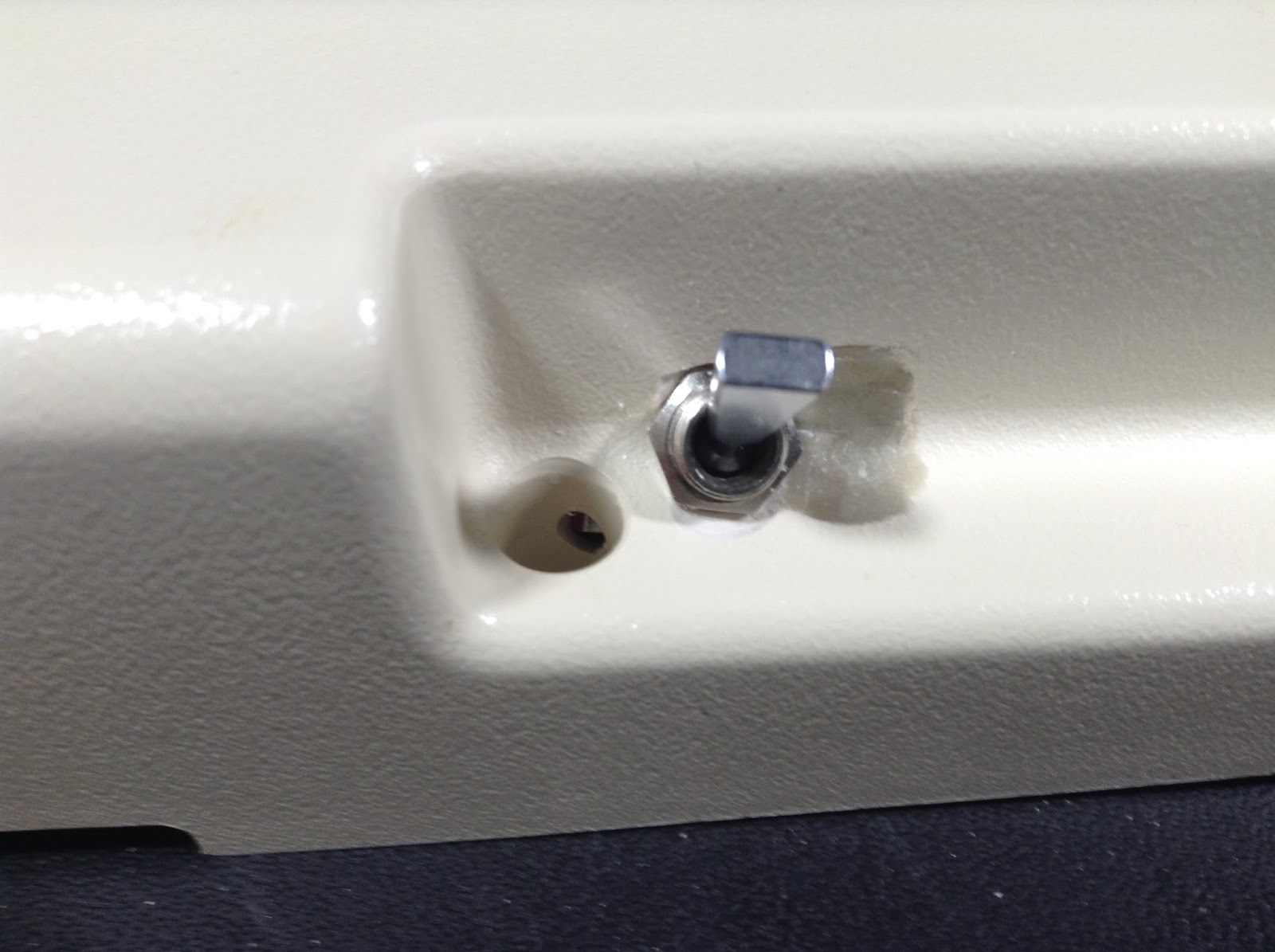 A reasonable (least bad) place to mount the switch on the case primarily depends on whether or not a //c carry case is being used. The //c has minimal protrusions. From the photo above, the most obvious places would be between the floppy drive and the back, or perhaps between the keyboard and the floppy drive. Neither of these works in a //c carry case.